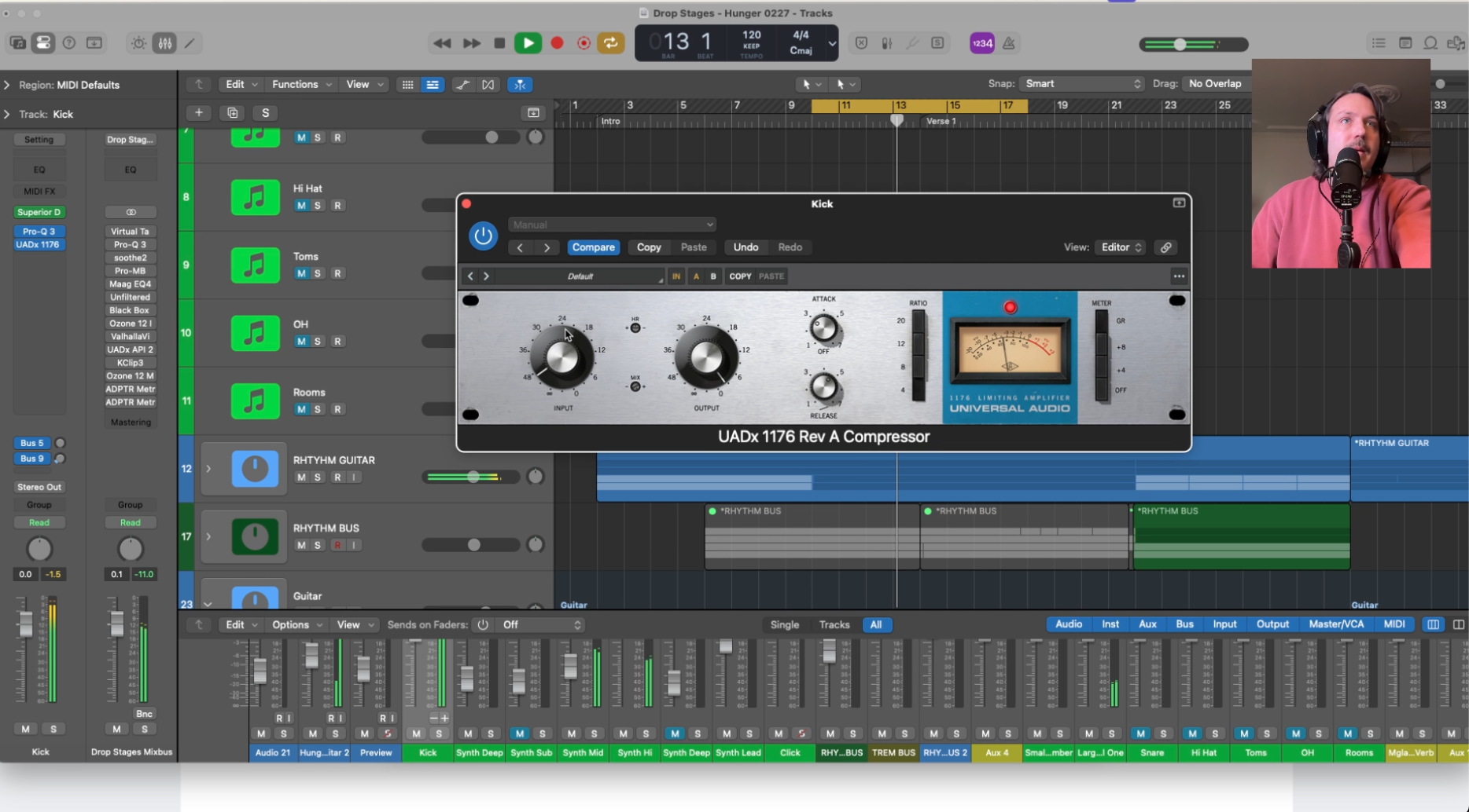 Once your individual channels are processed, route everything to a single drum bus. This is where the kit stops being a collection of processed samples and starts becoming one cohesive instrument. Set your levels so the overall balance feels right before you touch anything on the bus. The kit should already sound convincing at this point.