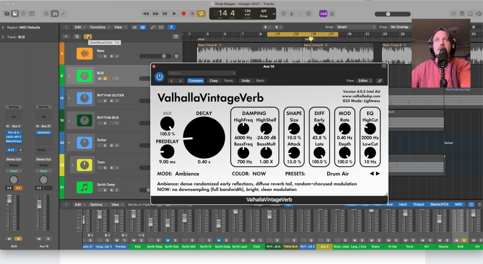 12. Add one final reverb send for the entire drum bus — use a short ambience to glue it all in
