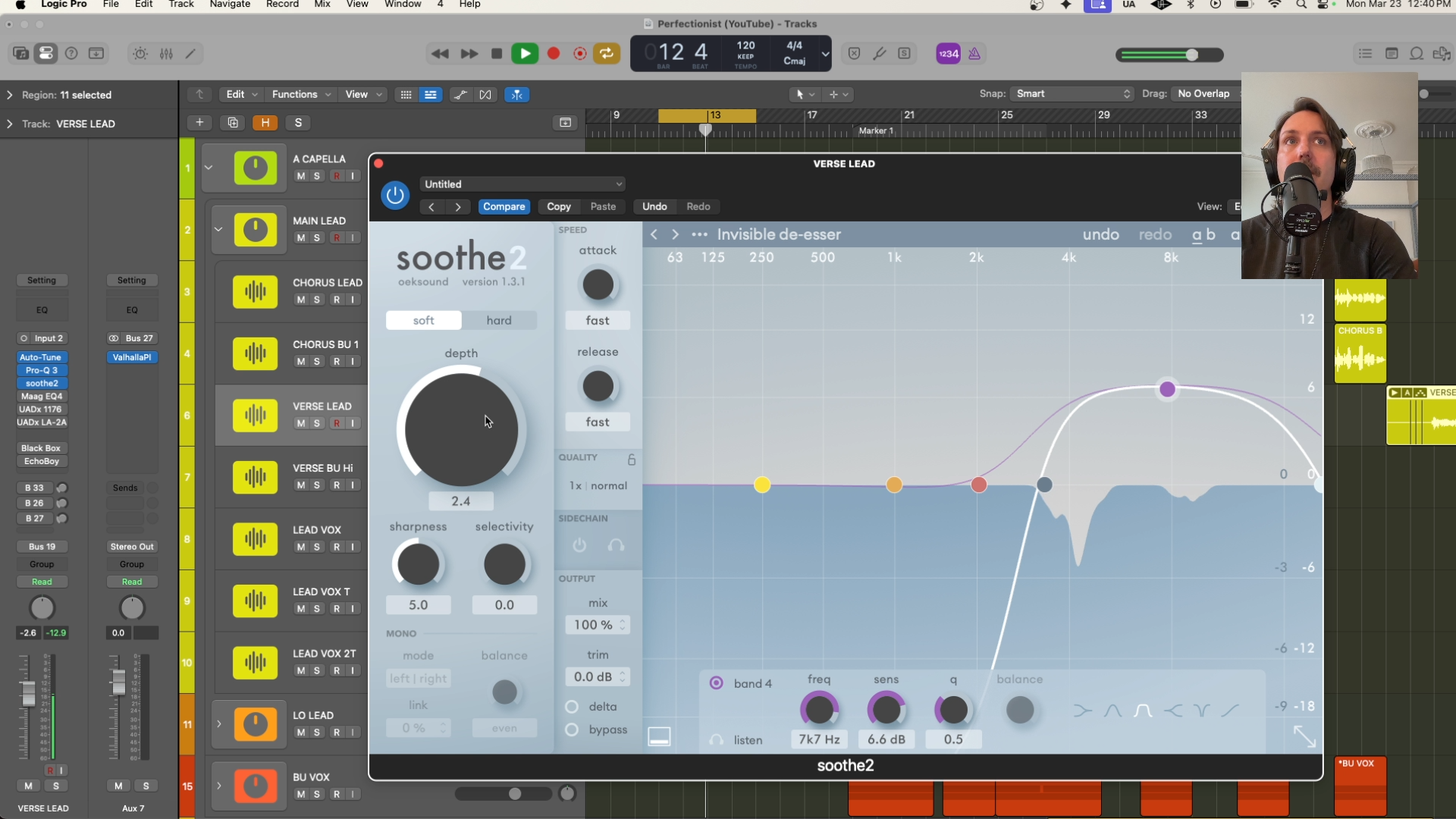 I like to throw Soothe 2 on the processing chain here because you can dynamically de-ess the track in a very transparent way, while also taking out some of the mud before it builds up