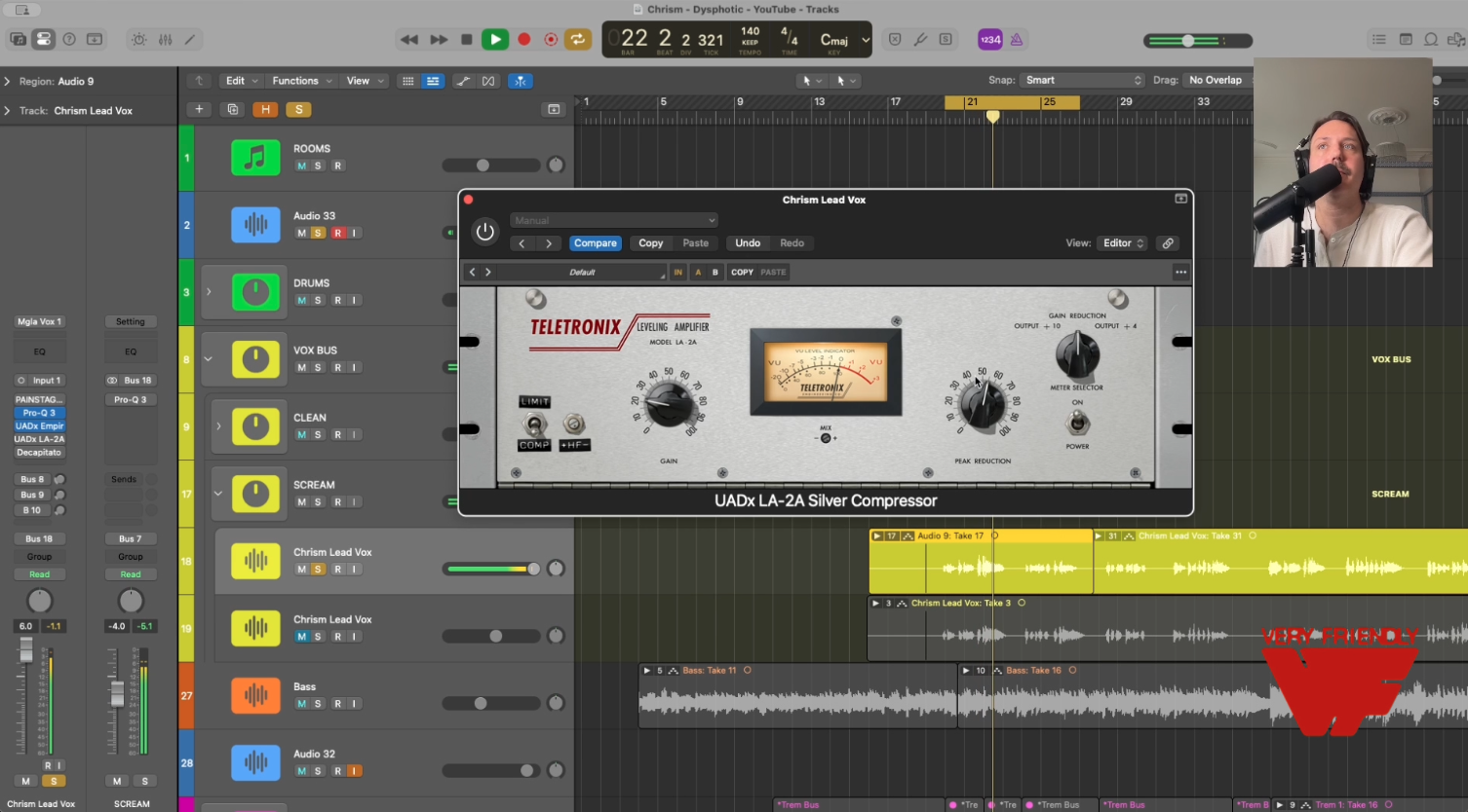 Then, LA-2A, just for color and glue. This is, funnily enough, the same two-stage compression that Charli XCX uses. It’s ideal for screams.